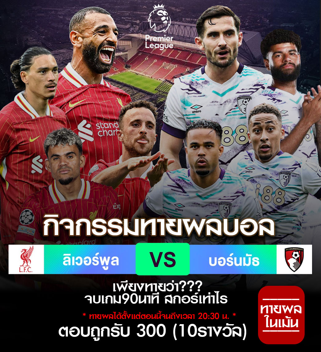 ลิเวอร์พูล 3-0 บอร์นมัธUSERNAME : UFZDFF158922024-09-21 17:17:50
