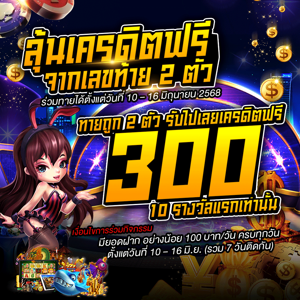 หากทายถูก รับไปเลย เครดิตฟรี 300 บาท (10ท่านเเรกที่ทายถูก) ทำเทิร์นเพียง 2 เท่า